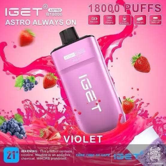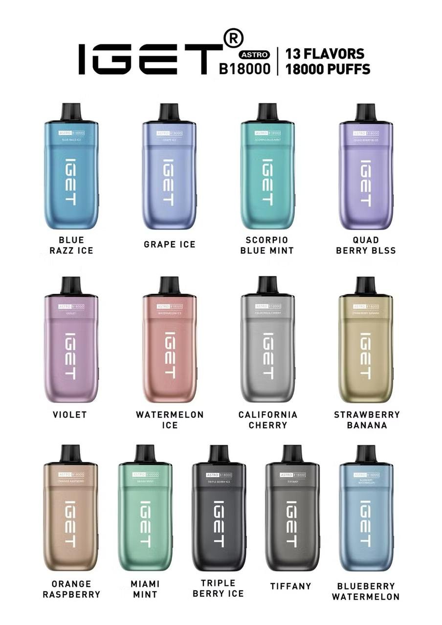 IGET BAR ASTRO B18000 Vaping Keep track of your battery, e-liquid levels, and vape mode with a full-screen display.